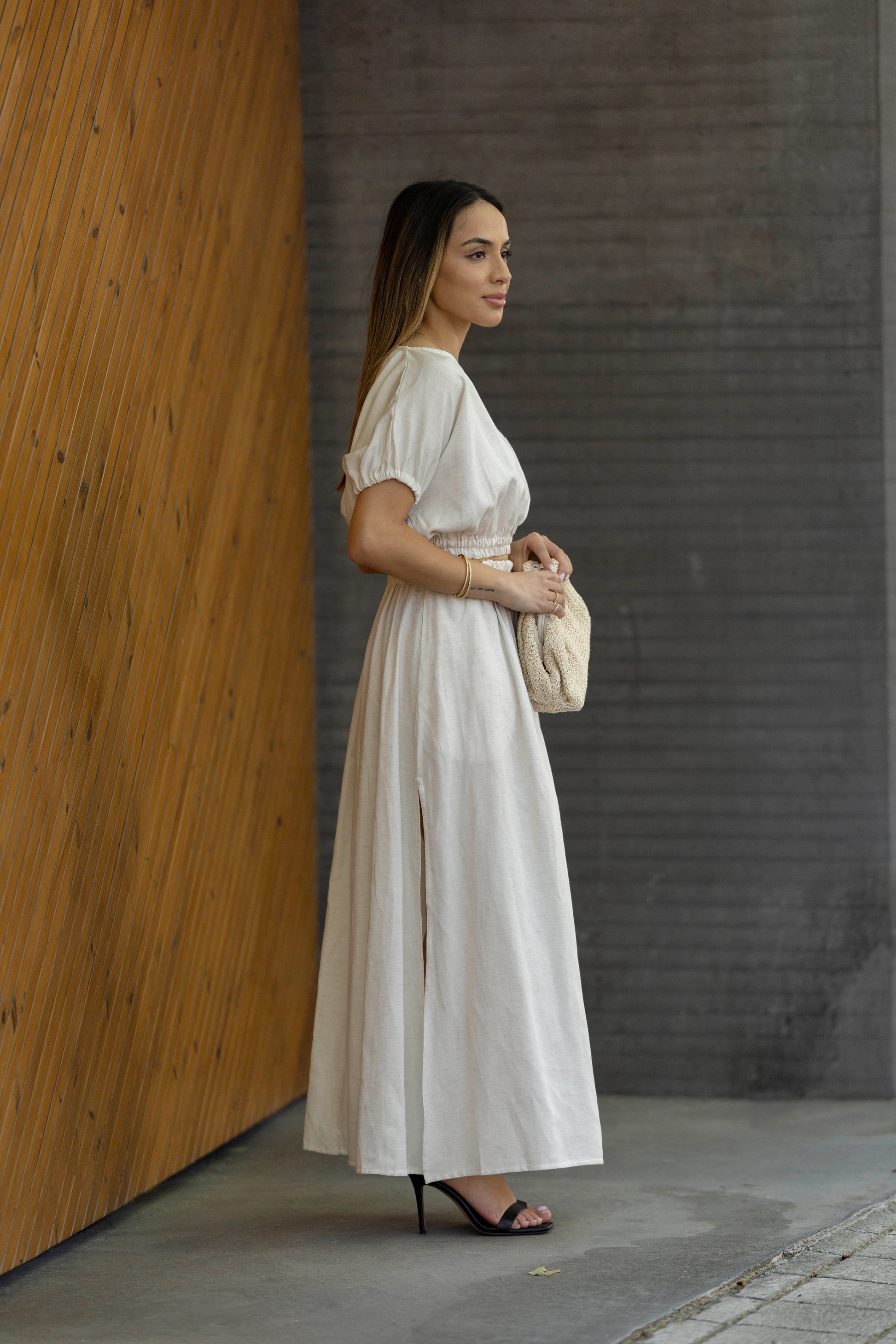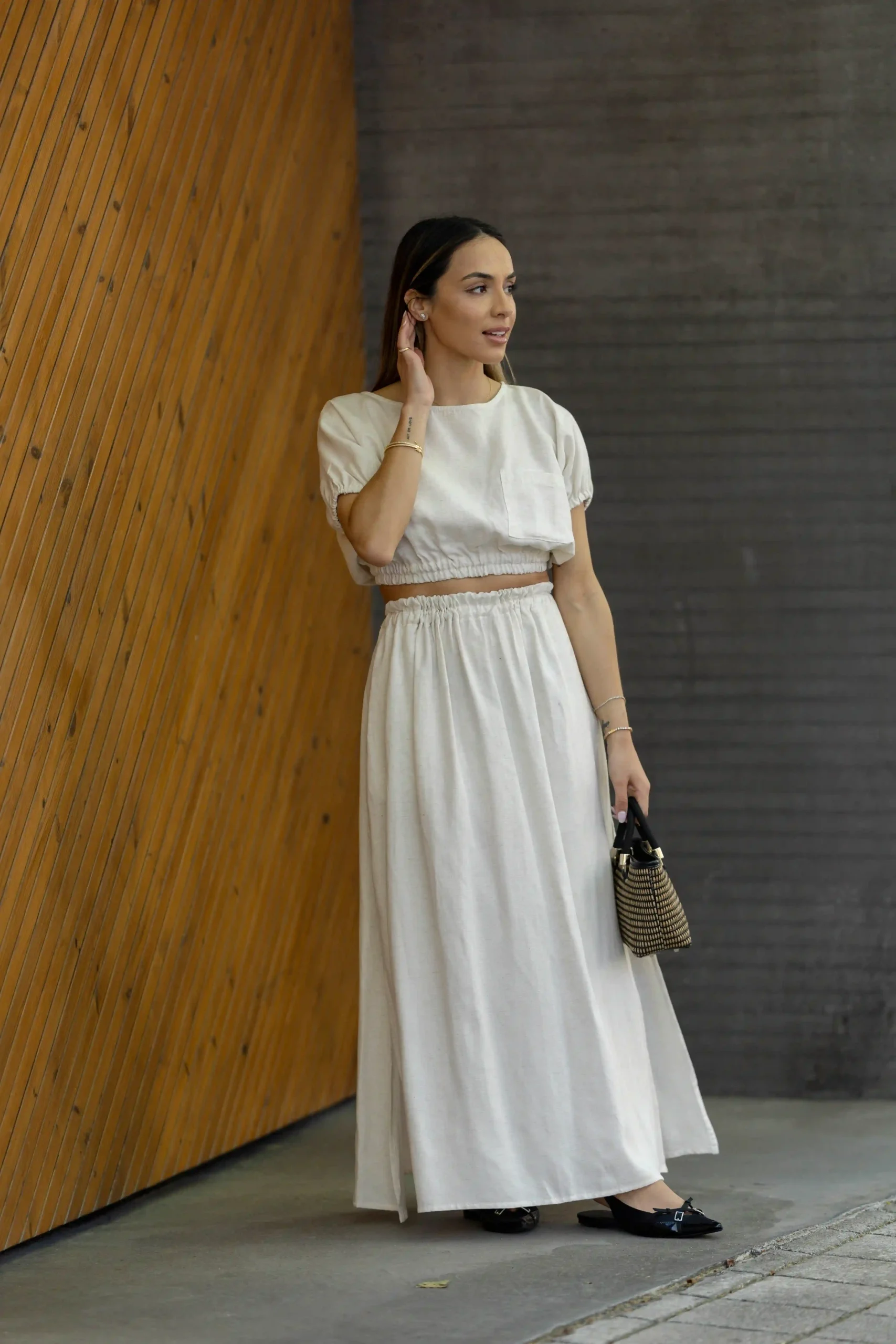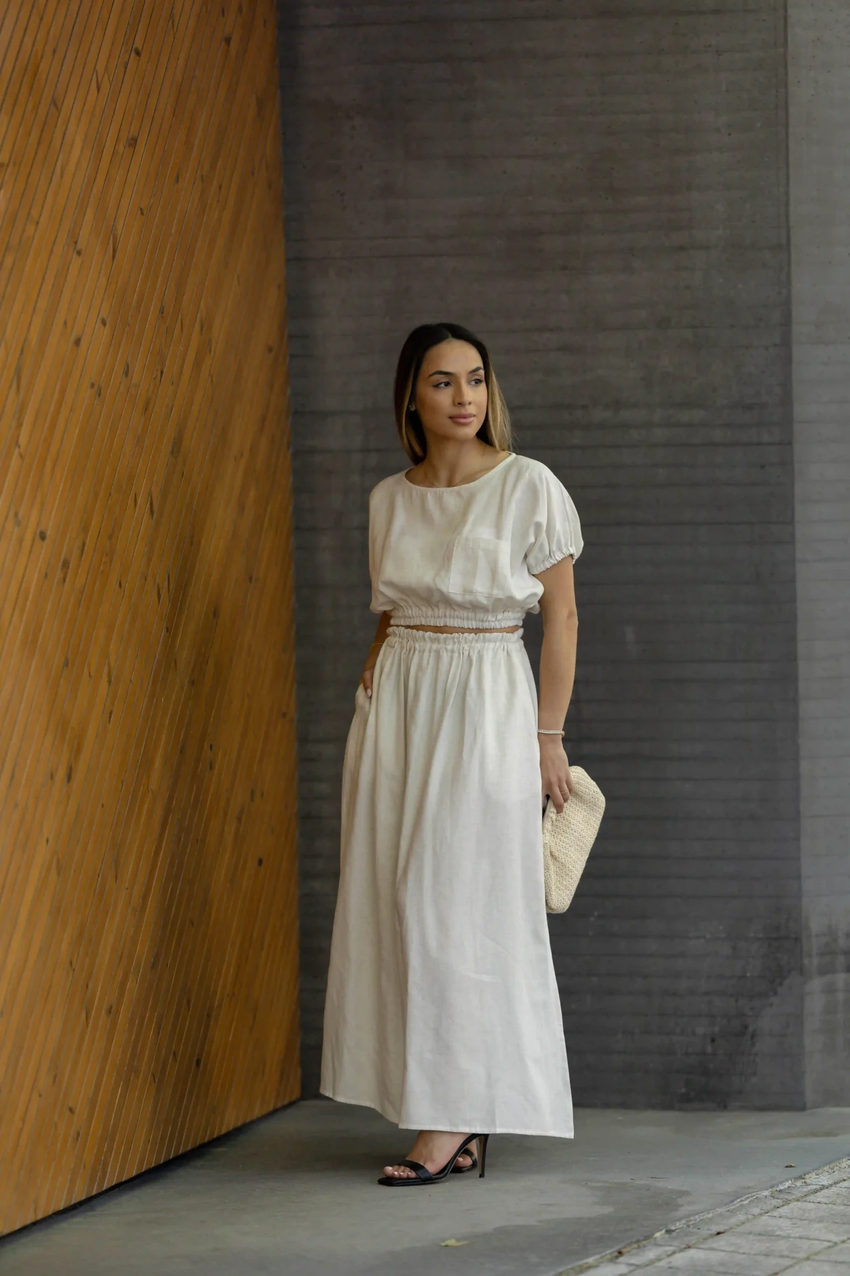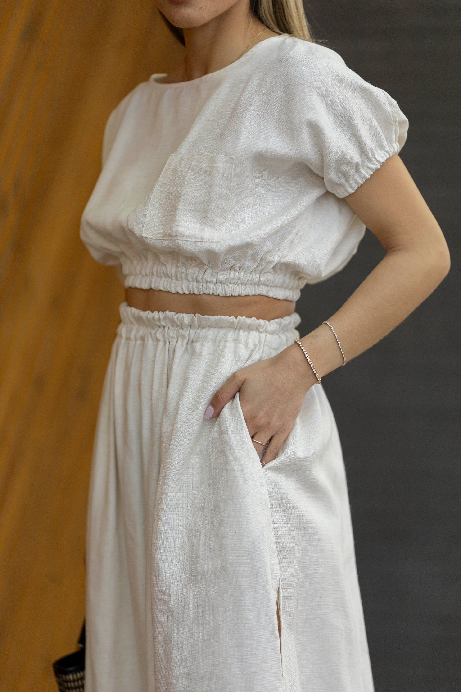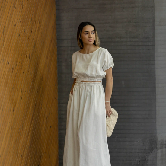 Saia Linho Branco Pérola